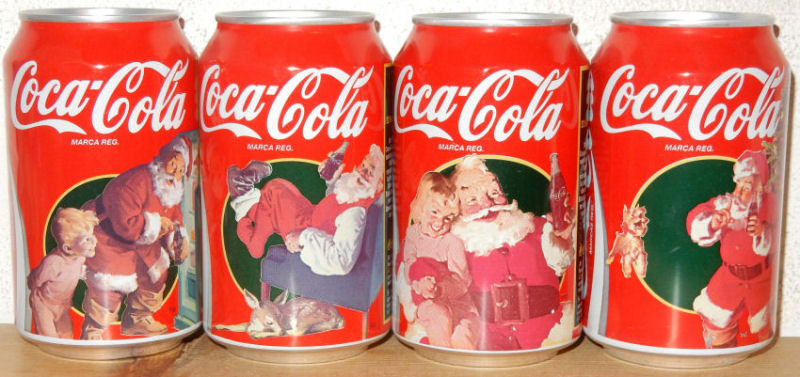 Spain, 4 cans Christmas Santa set 1995 (33cl)